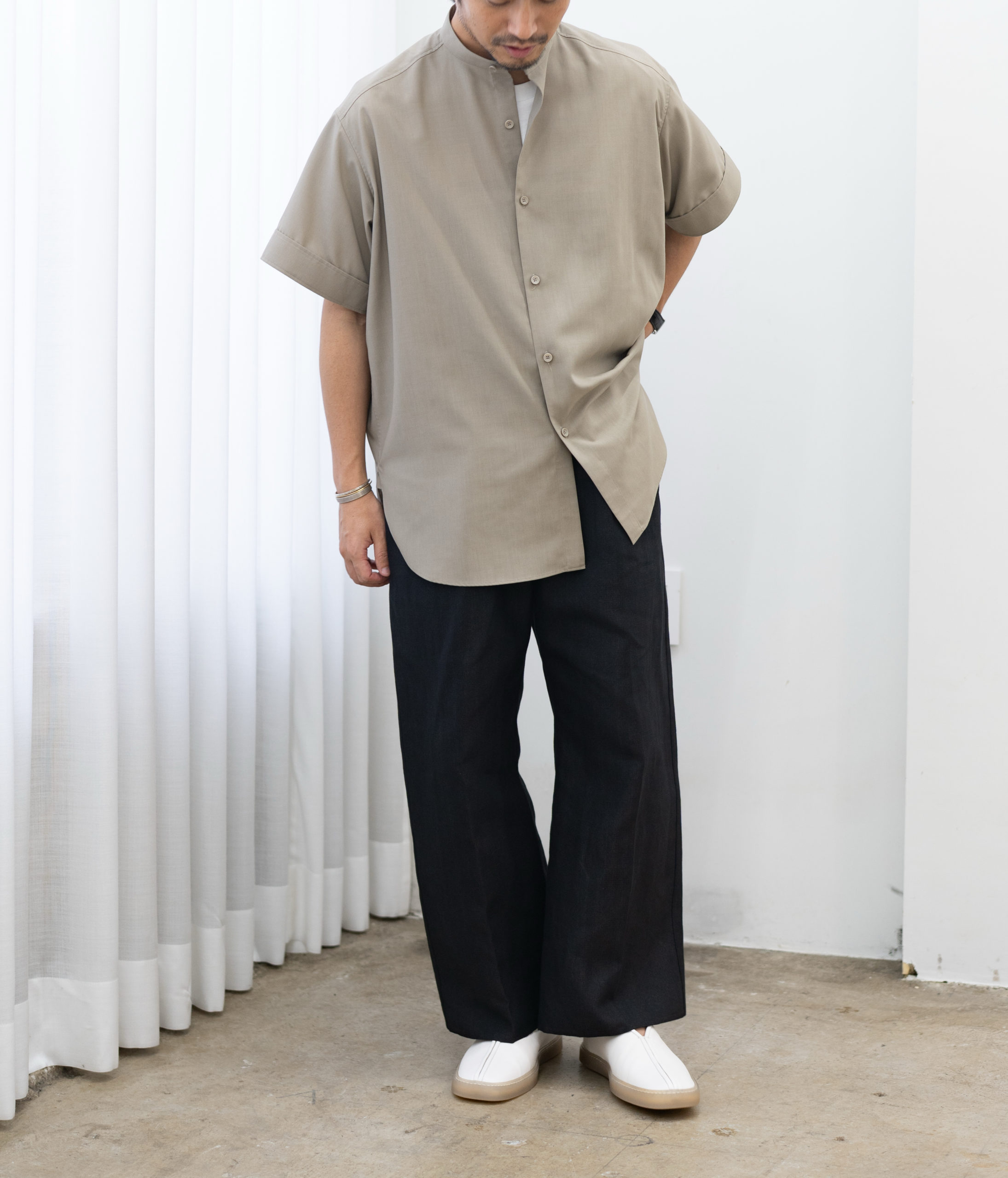” THE RERACS : BAND COLLAR SHIRT SHORT SLEEVE “
